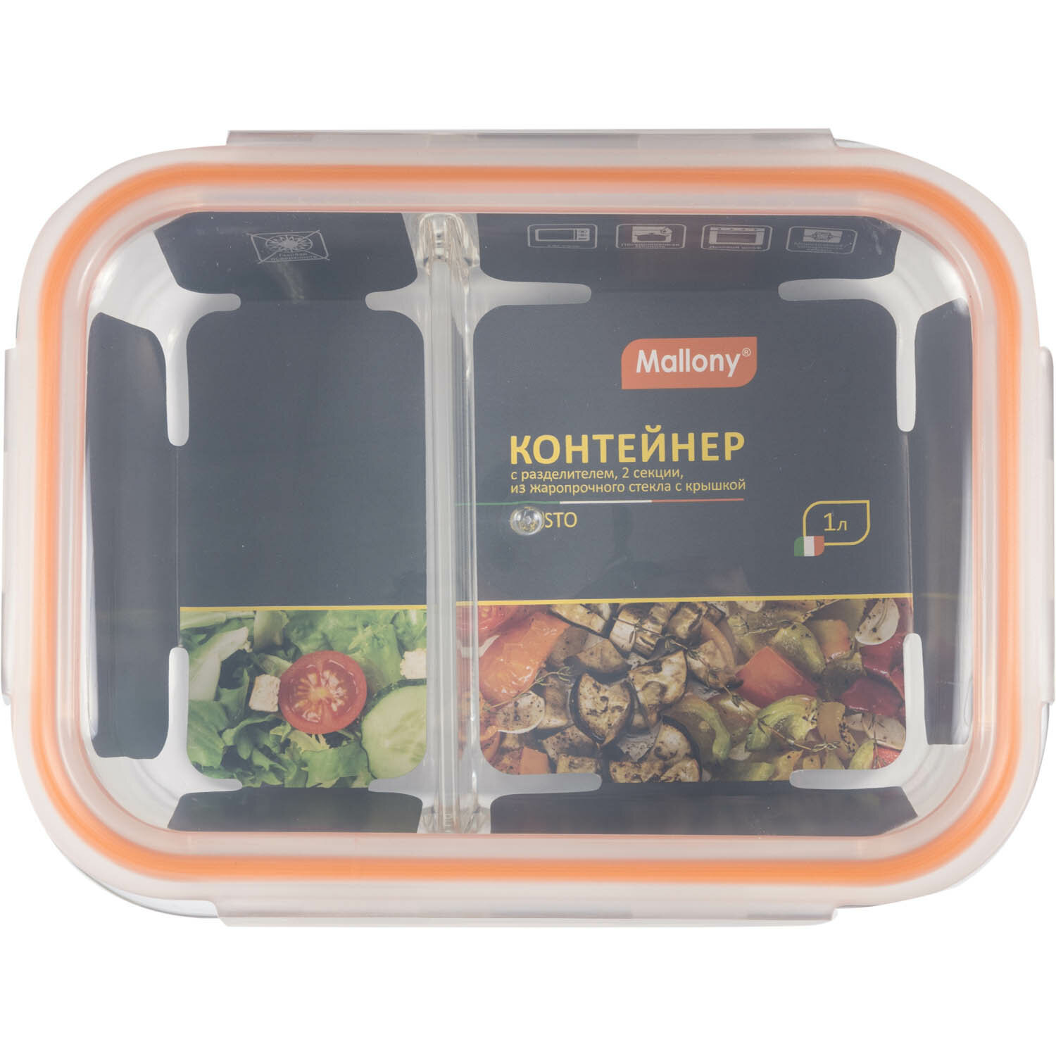 Mallony Контейнер GUSTO,1000 мл, 2 секции, из жаропроч. стекла с крышкой с защёлками, темп.режим -40