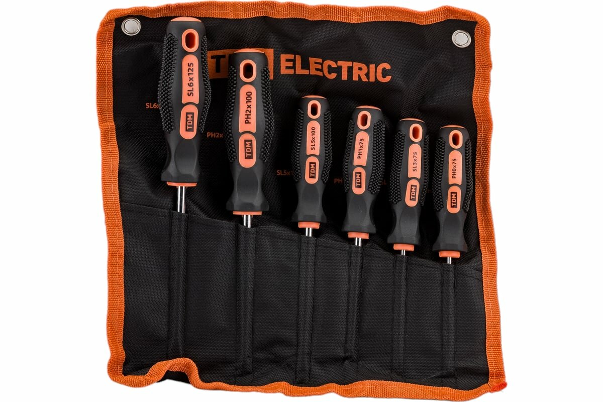 Набор отверток TDM ELECTRIC 6 шт.: SL:3х75,5х100,6х125, PH:0х75,1х75,2х100 (тканевый чехол), CR-V "Алмаз" (SQ1013-0203)