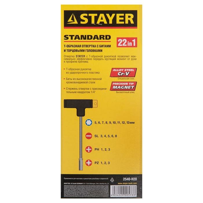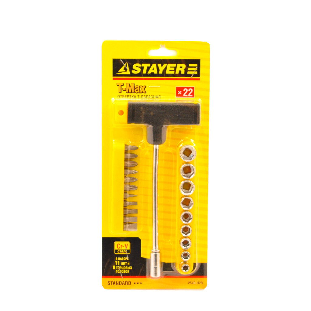 Отвертка STAYER с Т-образной ручкой в наборе с насадками 21 предмет 2540-H20