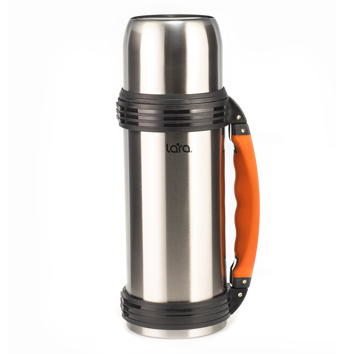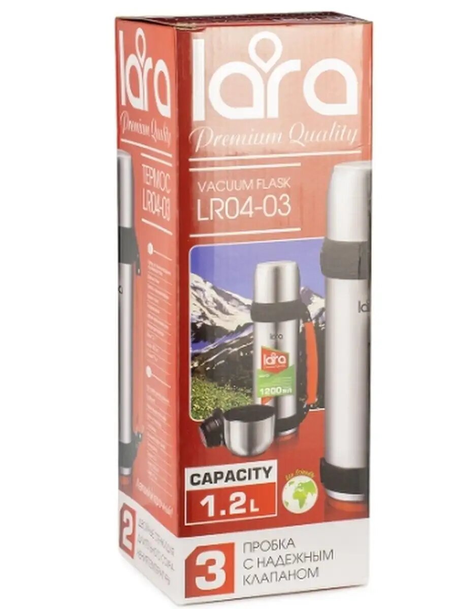 LR04-03 термос LARA - 1.20л, ручка, кнопка, ремешок, двойные стенки, крышка-стаканчик, нерж сталь интересное: