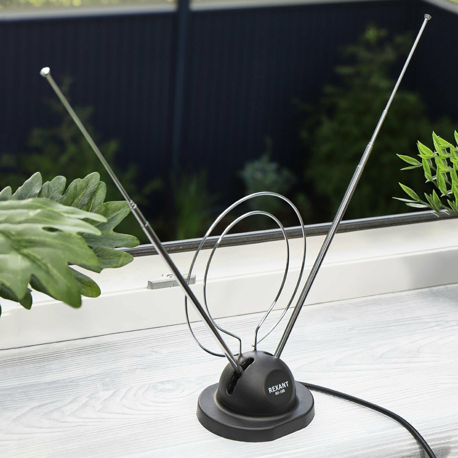 Антенна комнатная Rexant RX-100 телескопическая, на подставке, с кольцом