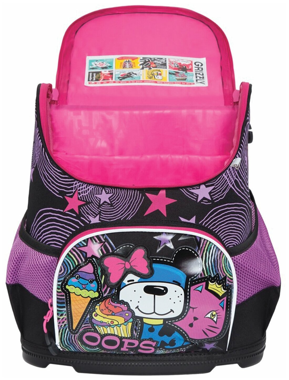 Ранец GRIZZLY школьный, анатомическая спинка, увеличенный объем, "Happy day", 33x30x20 см, RAv-088-4 /1
