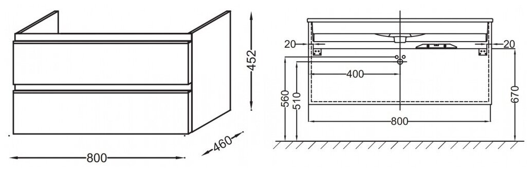 | Комплектация | 2 ящика, механизм доводчика, раковина в комплект не входит |
