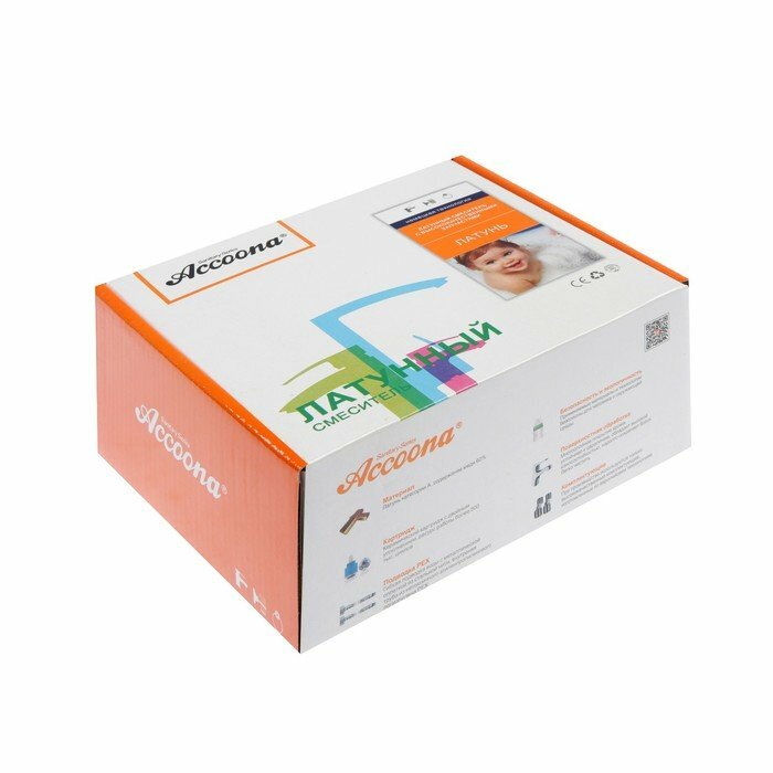 Смеситель для раковины Accoona A90122, однорычажный, латунь, с гайкой, хром Accoona 4973675 .