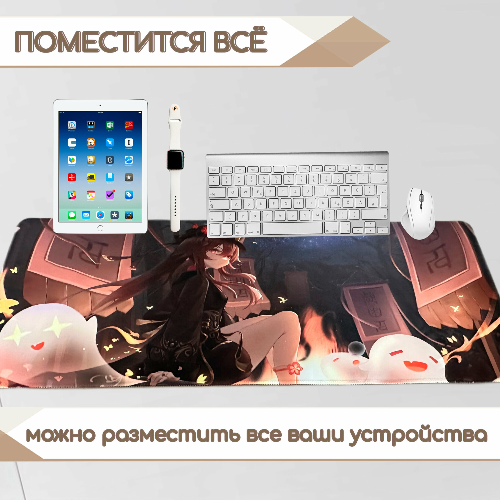 Купить Большой игровой коврик для мыши на тканевой основе 800х300х2 Геншин Импакт Ху Тао