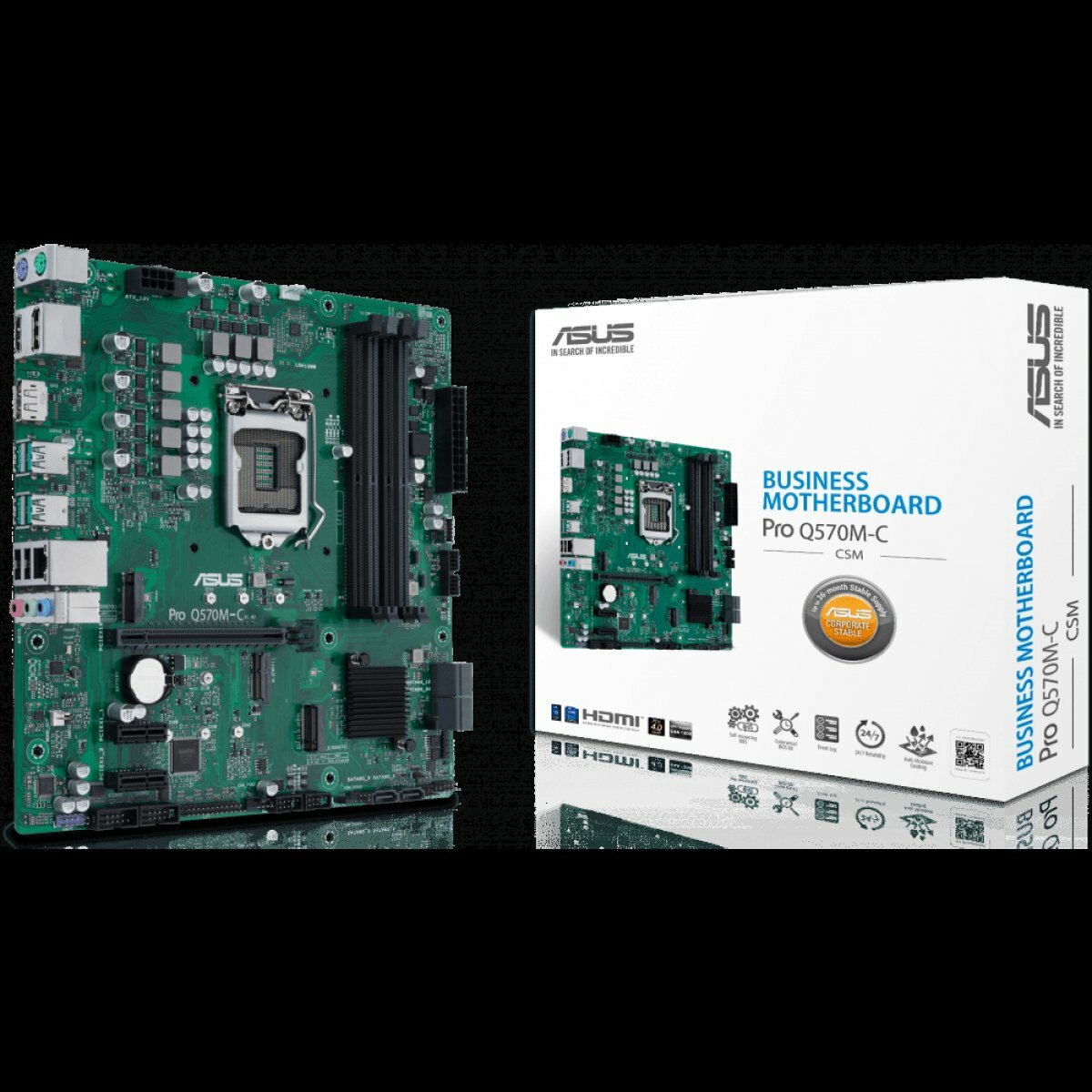 ASUS Материнская плата Socket1200 ASUS PRO Q570M-C/CSM (iQ570, 4xDDR4, M.2, SATA III, PCI-E, HDMI, 2xDP, 1Гбит LAN, USB3.2, mATX) (ret)