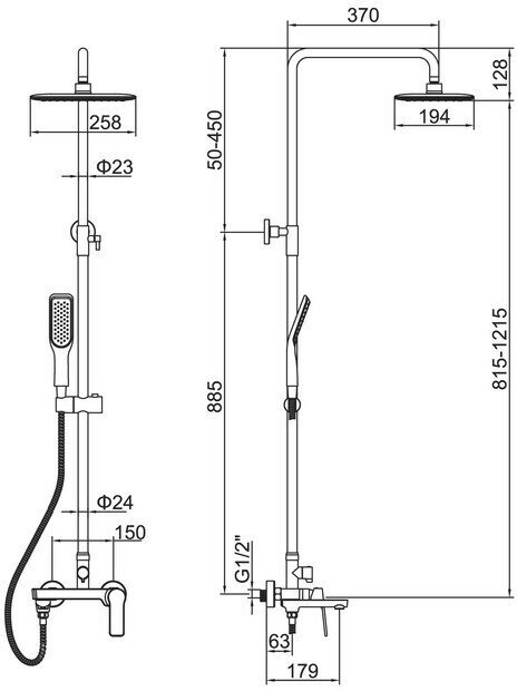 | Комплектация | лейка / верхний душ / шланг |