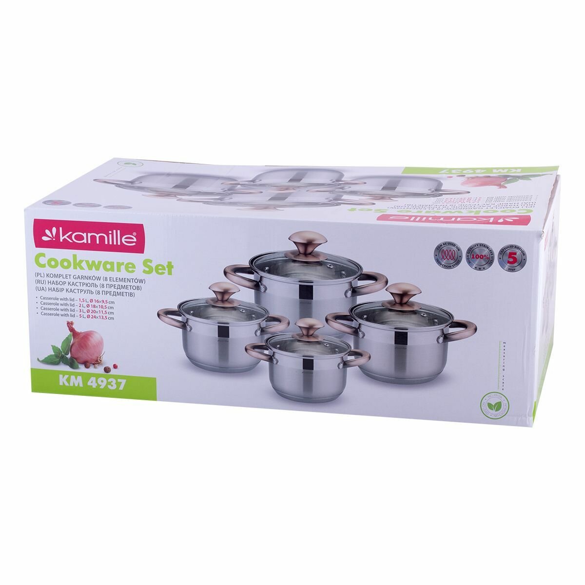 Набор кастрюль 12 предметов из нержавеющей стали Kamille KM-4704S (1,8 л; 2х2,3 л; 2х3,3 л; 5,8 л. 7-слойное дно) (2)