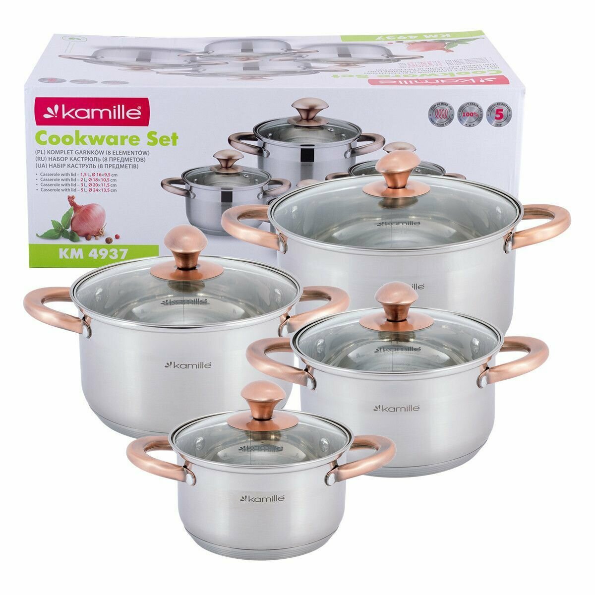 Набор из 6-ти кастрюль Kamille 1.8 л, 2.3 л, 3.3 л, 5.8 л из нержавеющей стали с крышкой