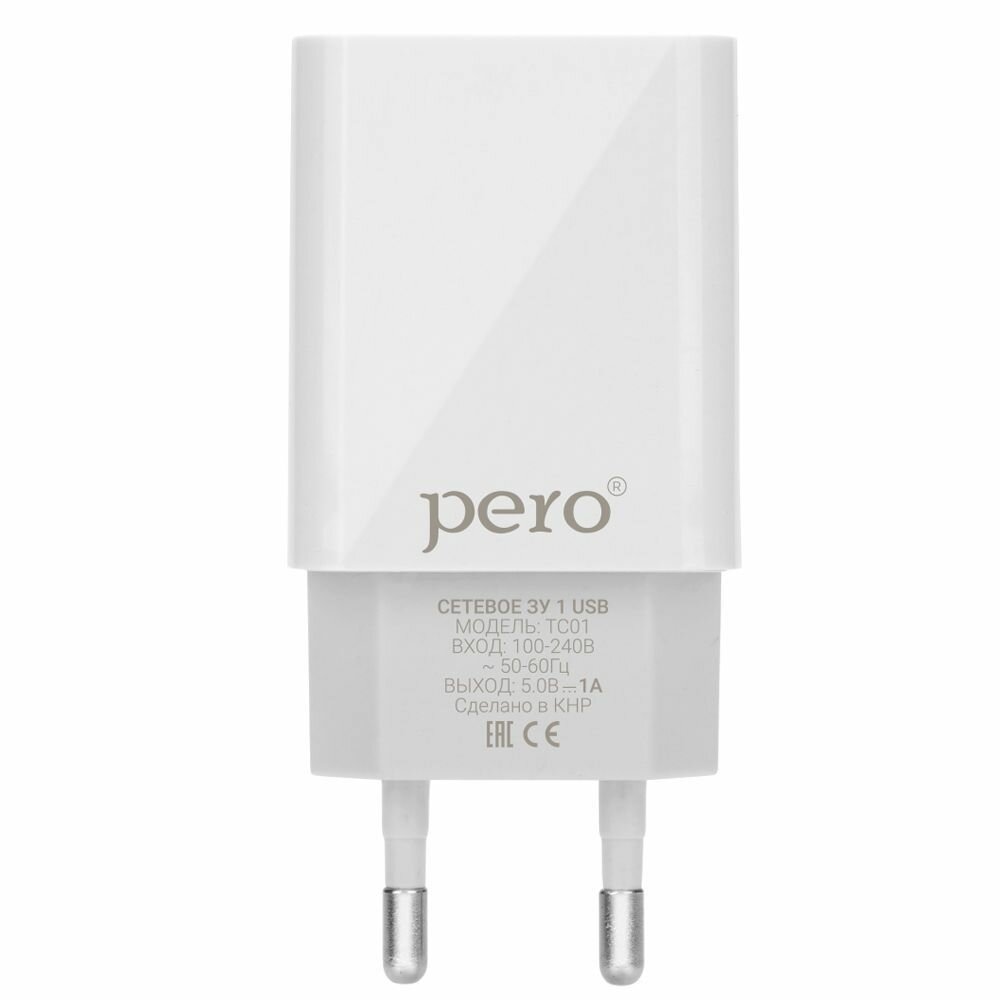 Зарядное устройство сетевое PERO TC01 1USB 1A белый