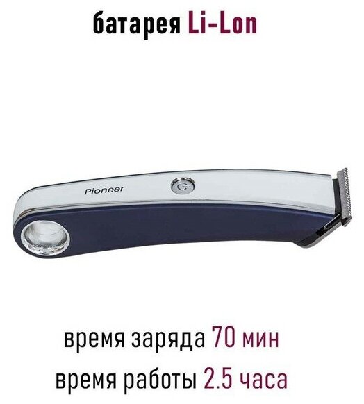 Машинка для стрижки Pioneer беспроводная с LED-дисплеем, 4 съемными регулируемыми насадками 1,5мм / 3мм / 4,5мм / 6 мм и стальными лезвиями