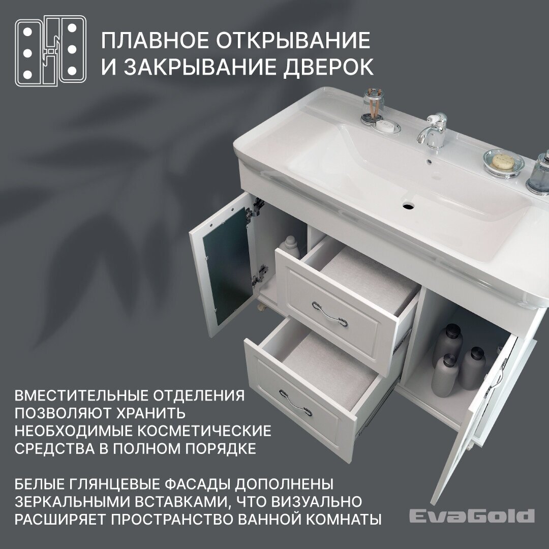 Тумба с раковиной EvaGold Viktoria 105 Kirovit Дуглас 105 белая для ванной интересное: