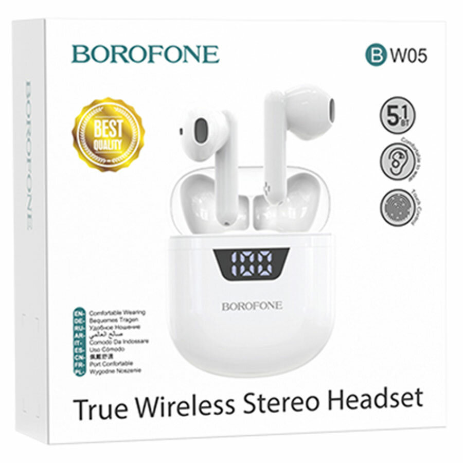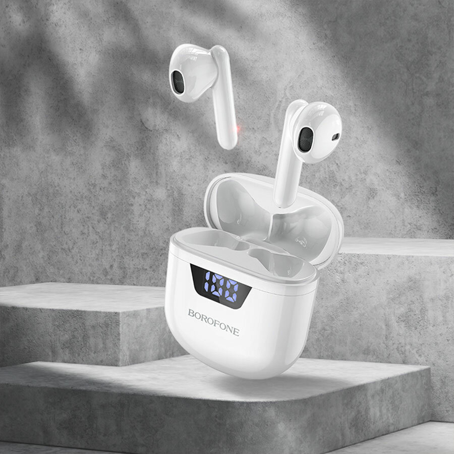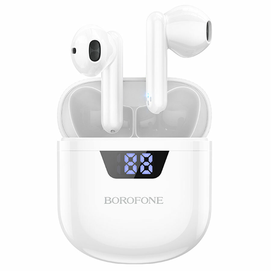 Наушники Borofone BW05 Pure, TWS, вкладыши, Bluetooth 5.1, 30/250 мАч, дисплей, белые