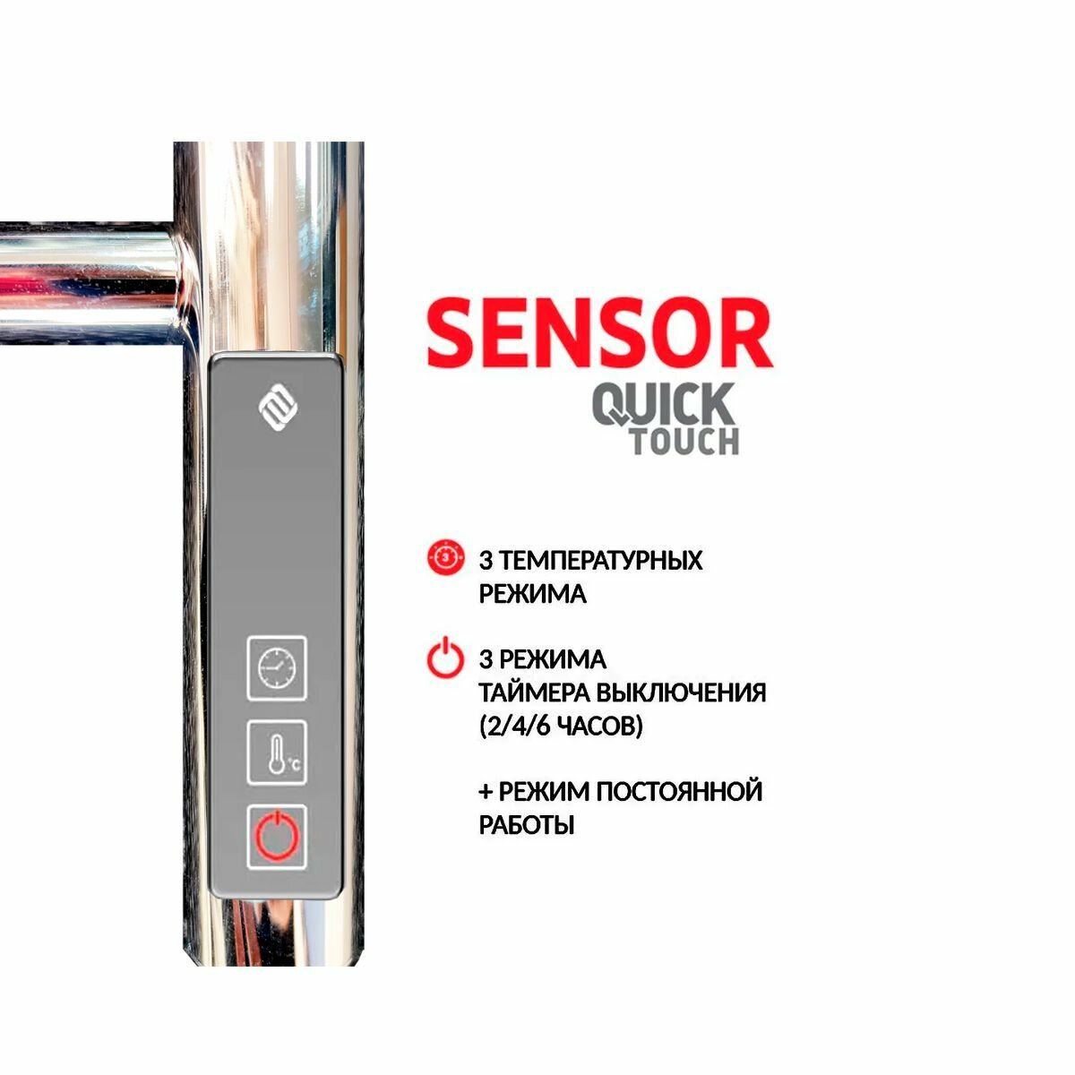 Электрический полотенцесушитель TERMINUS Аврора П8 500х850 птэн (quick touch), с креплением, нержавеющая сталь