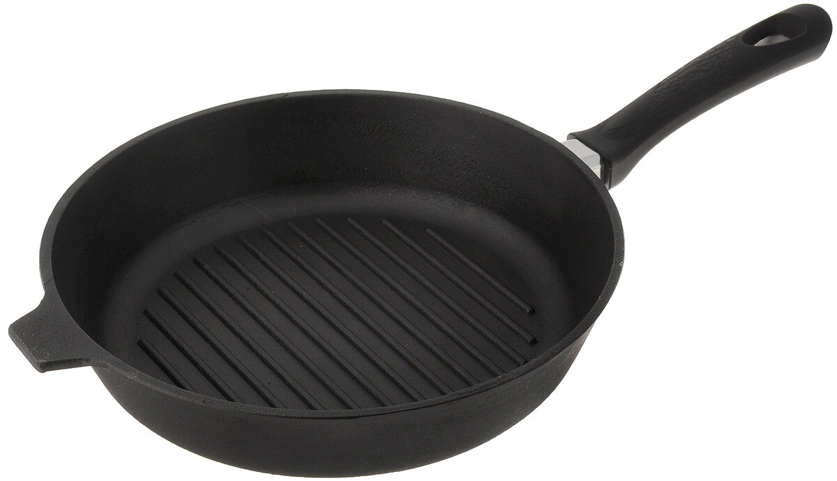 Сковорода гриль чугунная Добрыня DO-3326 28х6см, с пластиковой ручкой, без крышки