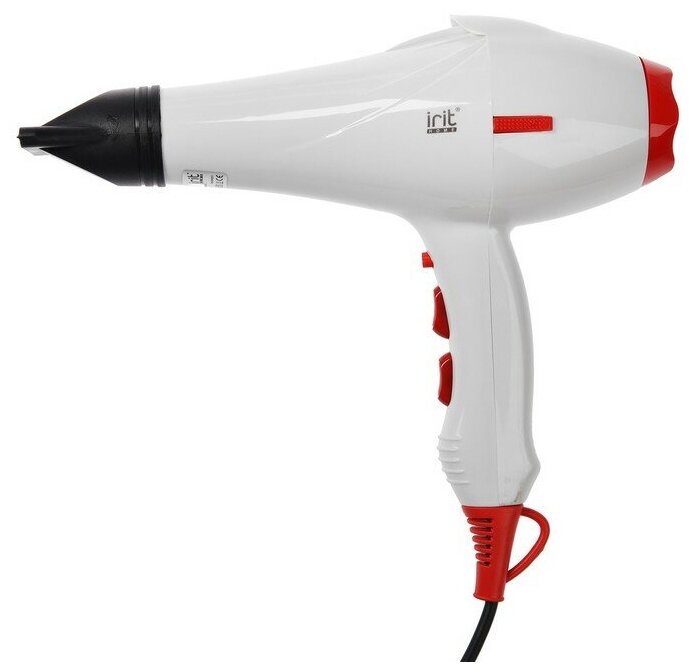 IRIT Фен Irit IR-3146, 2000 Вт, 2 скорости, 3 температурных режима, концентратор, бело-красный