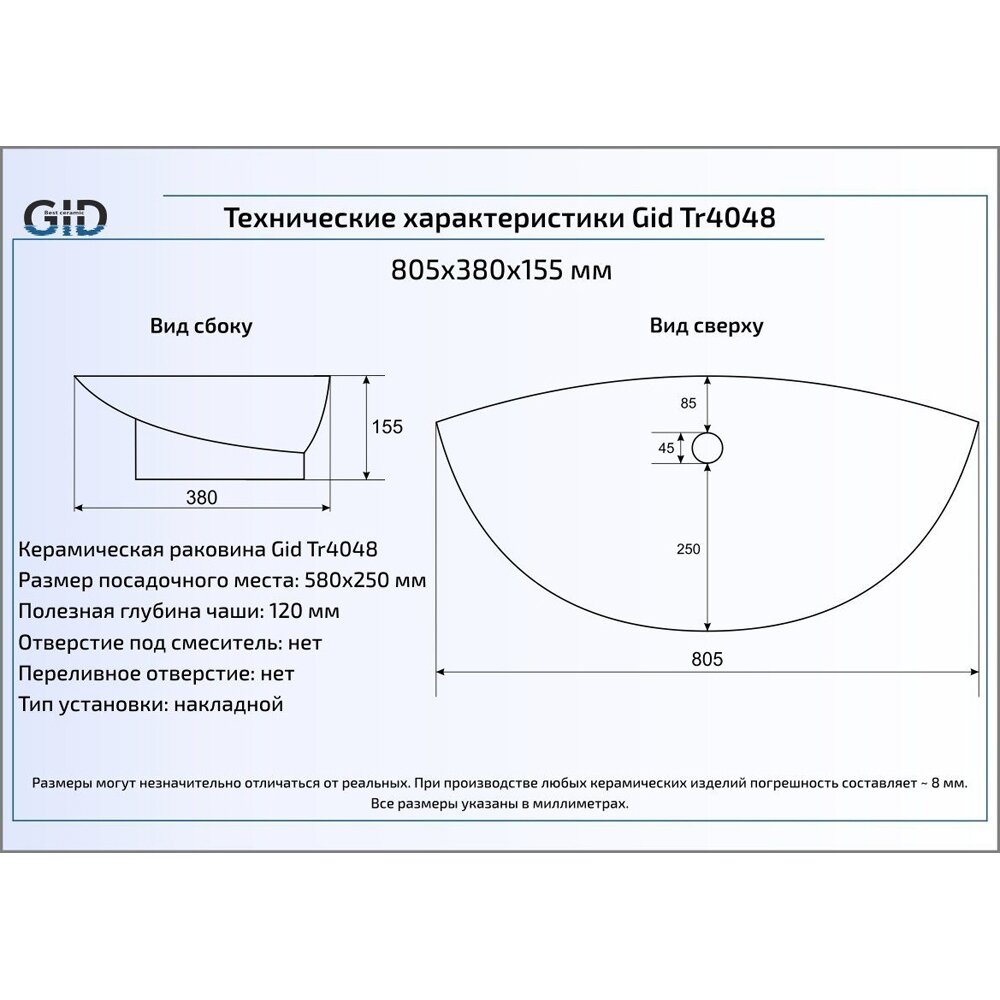 Ниже Вы можете прочитать отзывы на Накладная раковина белая 80x38x15см Gid Tr4048, ознакомится с подробными характеристиками, посмотреть интересные обзоры и фотографии на Накладная раковина белая 80x38x15см Gid Tr4048.