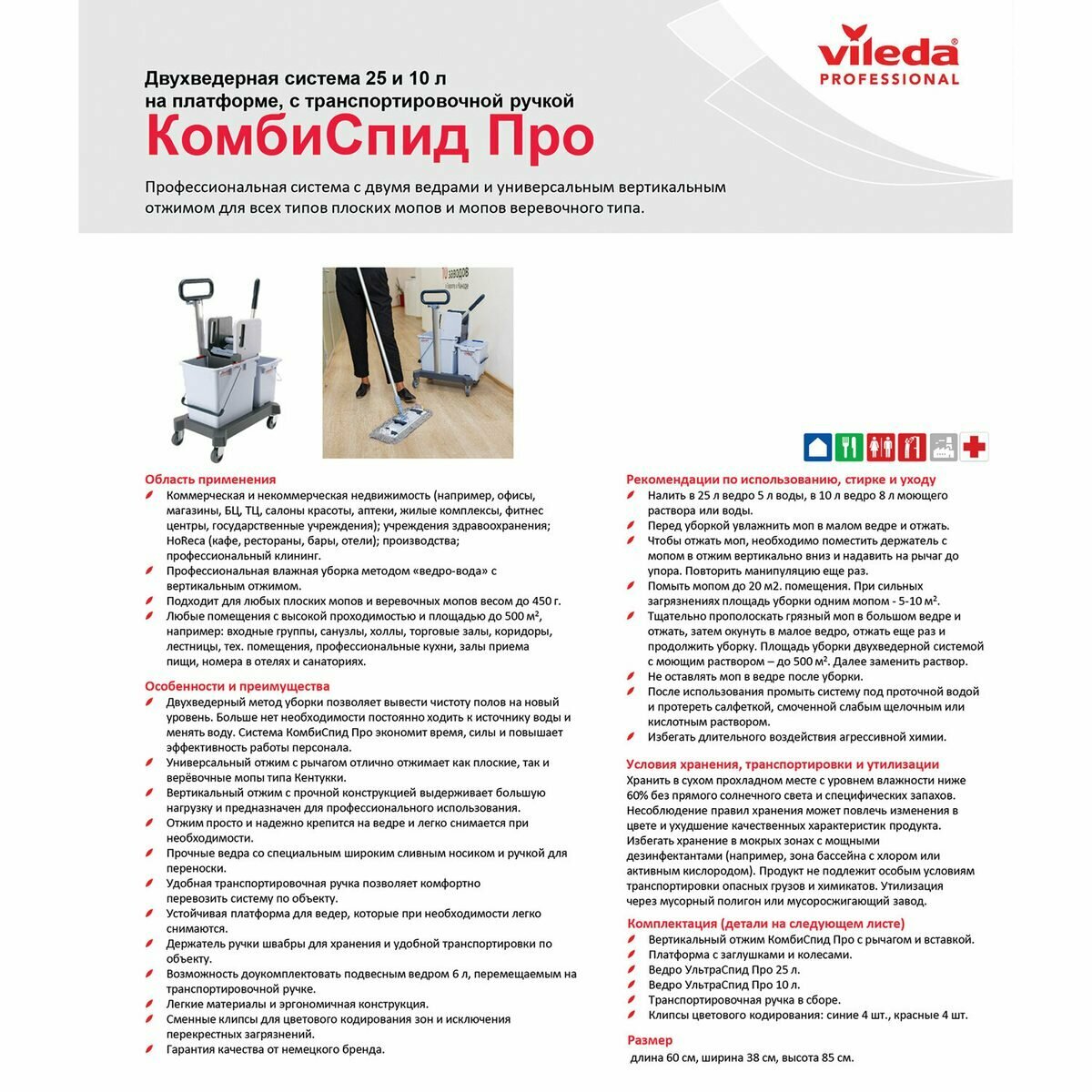 Купить Тележка уборочная Vileda CombiSpeed Pro, 2 съемных ведра 25л+8л, платформа, с транспортной ручкой, вертик. отжим (149099)