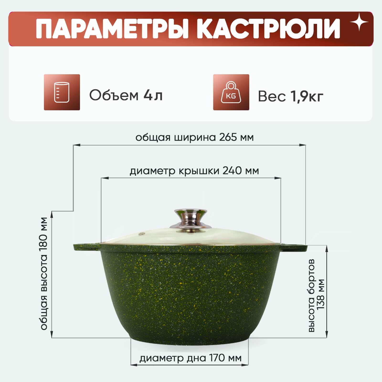 Кастрюля АП 2,0л стеклянная крышка литая Trendy style Malachit