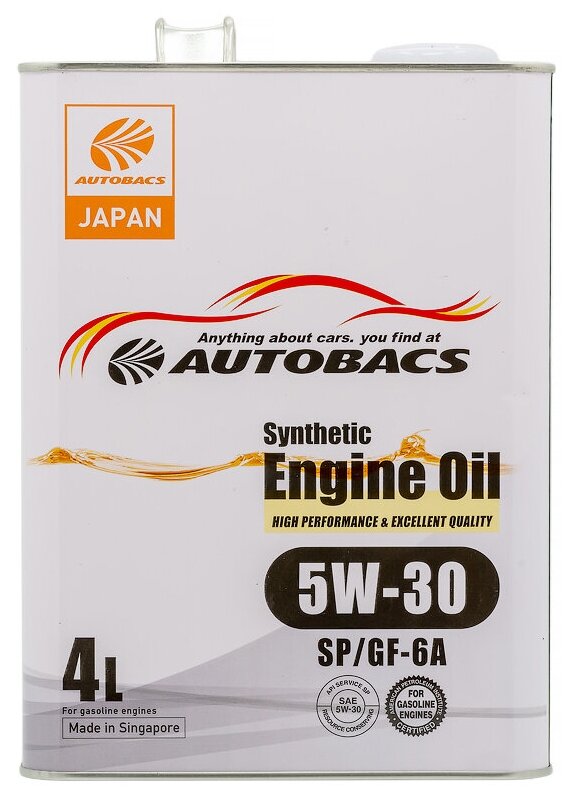 Моторное масло Сингапур AUTOBACS Engine oil SYNTETIC 5W30 SP/GF-6A 4л A00032428