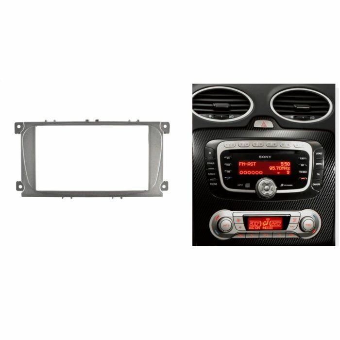 Переходная рамка 2-DIN для а/м FORD Focus, Mondeo, S-Max, C-Max 2007-11; Galaxy 2006-11; Kuga 2008-12 серебро CARAV 11-416