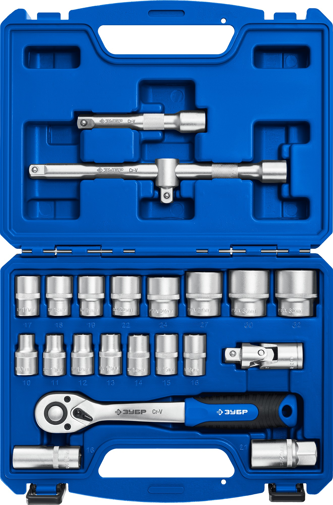 Набор торцовых головок ЗУБР "мастер" FLANK (1/2") 22 предм 27632-H22