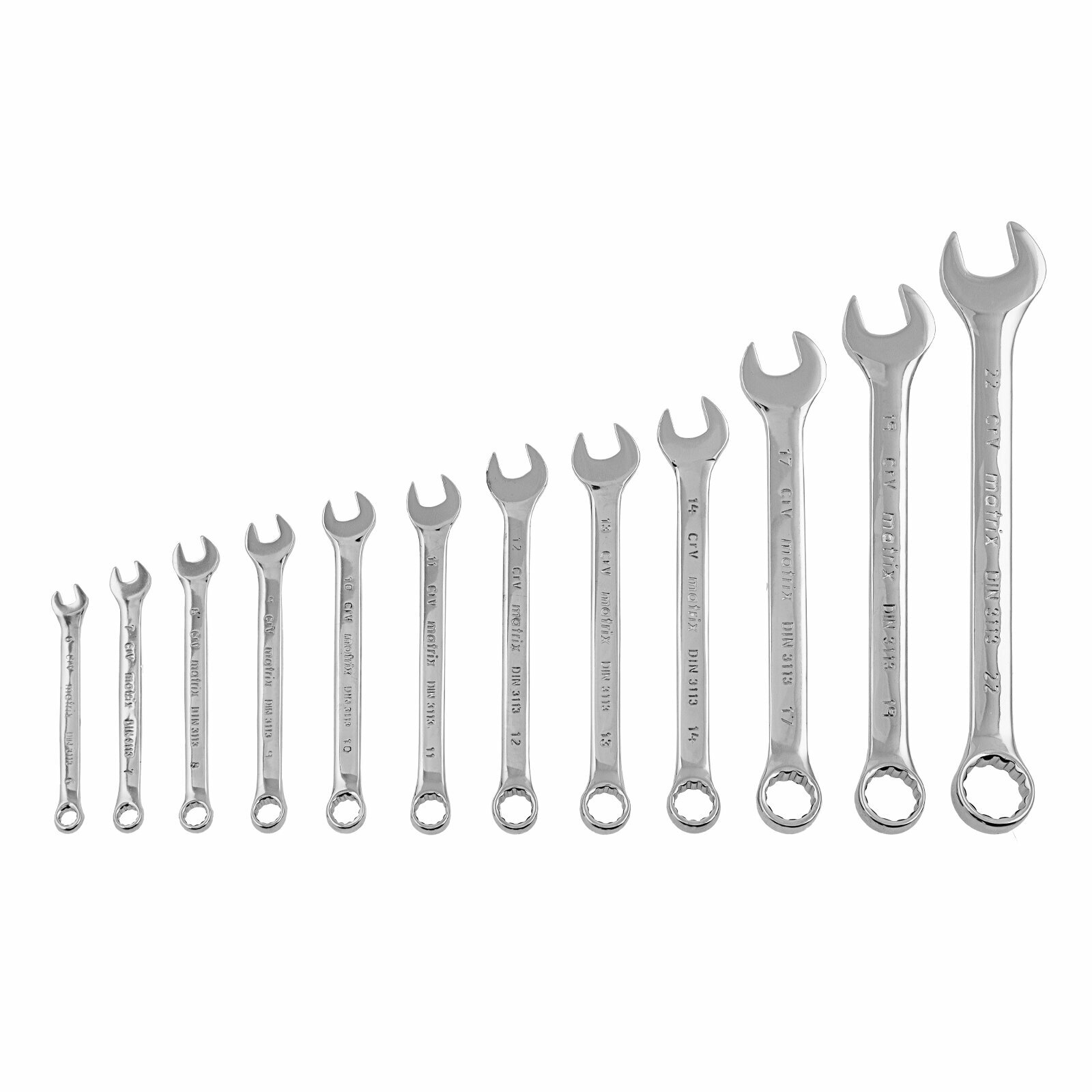 набор ключей комбинированных, 6 - 22 мм, 12 шт. crv, полированный хром matrix 15426