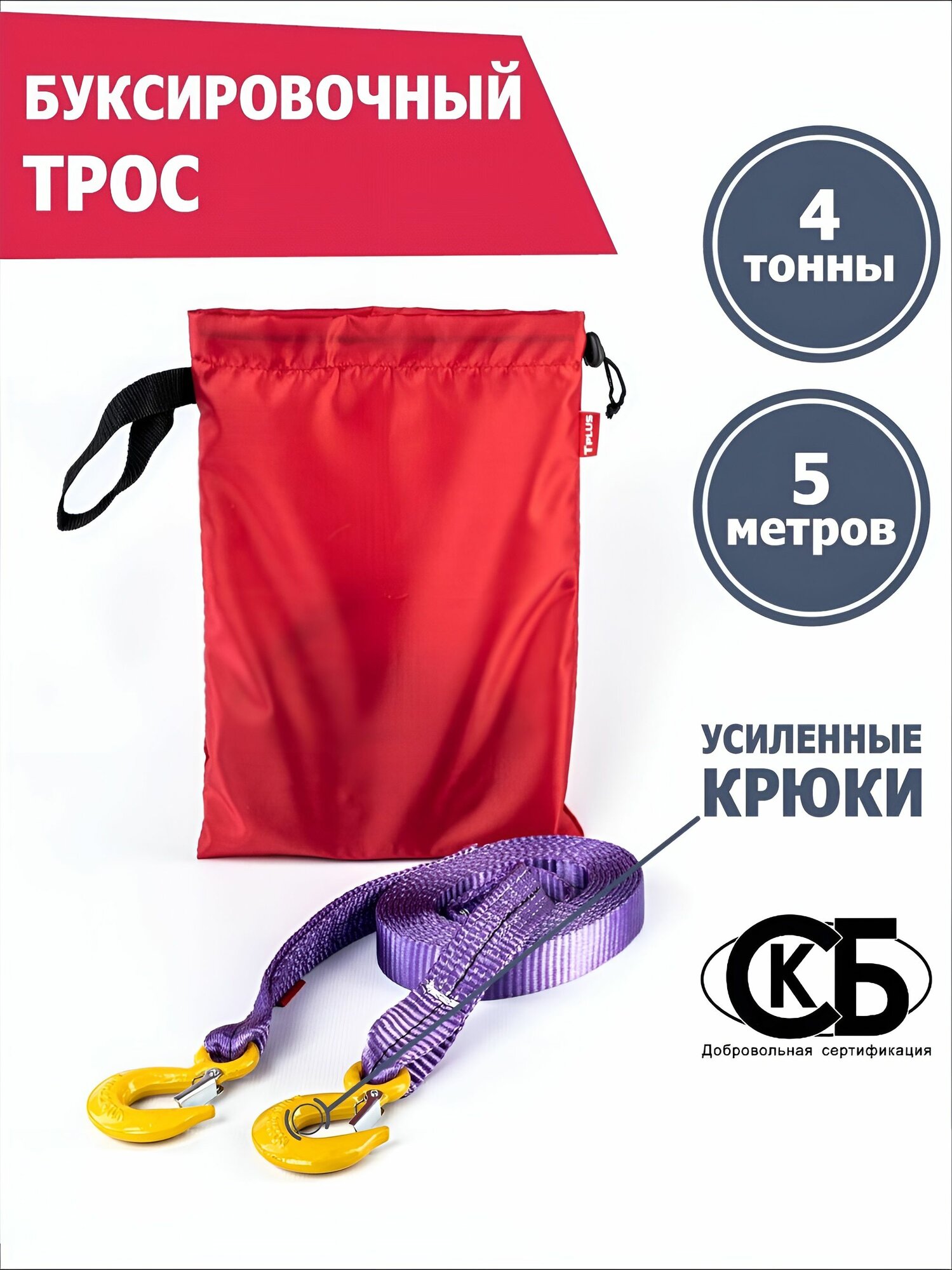 Купить Трос буксировочный 4 т 5 м с крюками для автомобиля, Tplus