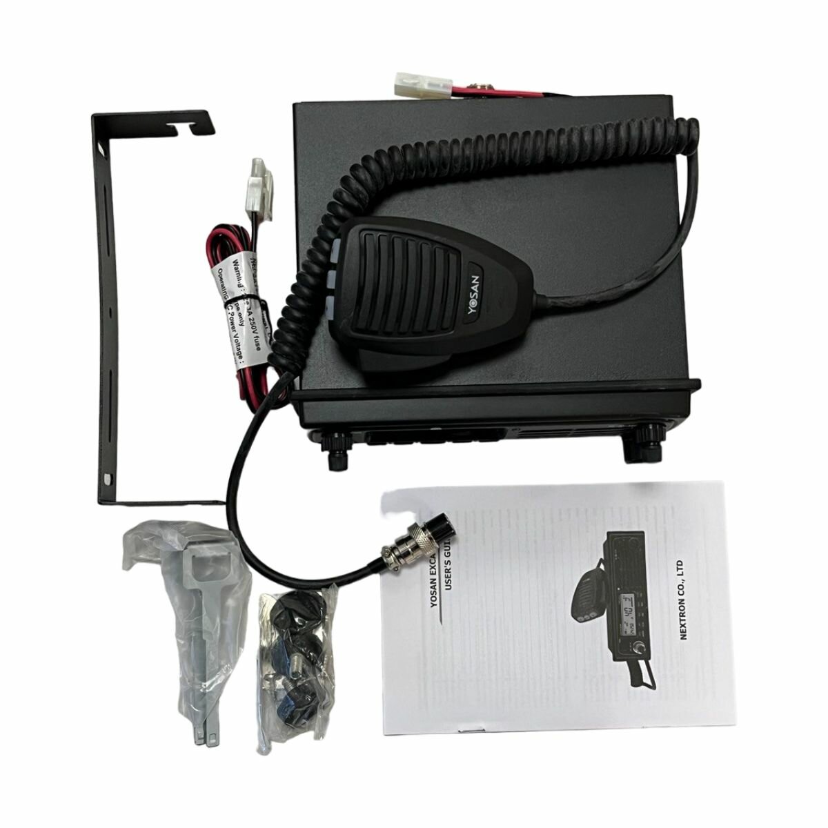 | Комплектация | радиостанция Yosan Excalibur, гарнитура, скоба крепления, салазки, ключи для демонтажа рации из салазок, кабель питания с разъемом, держатель для гарнитуры, крепежные элементы, коробка |