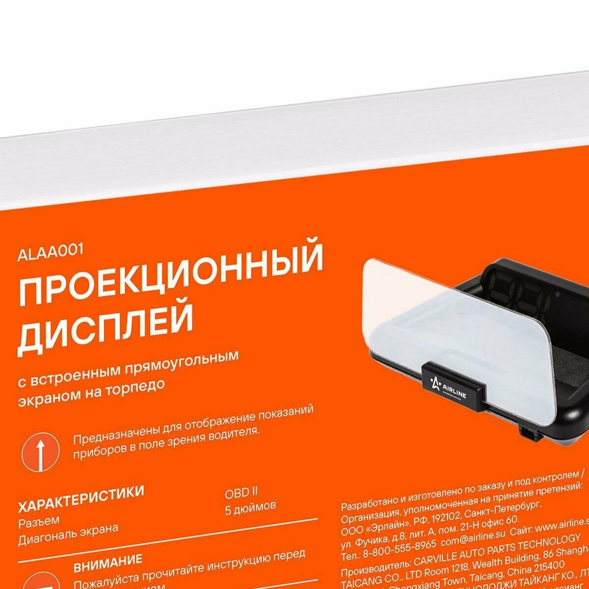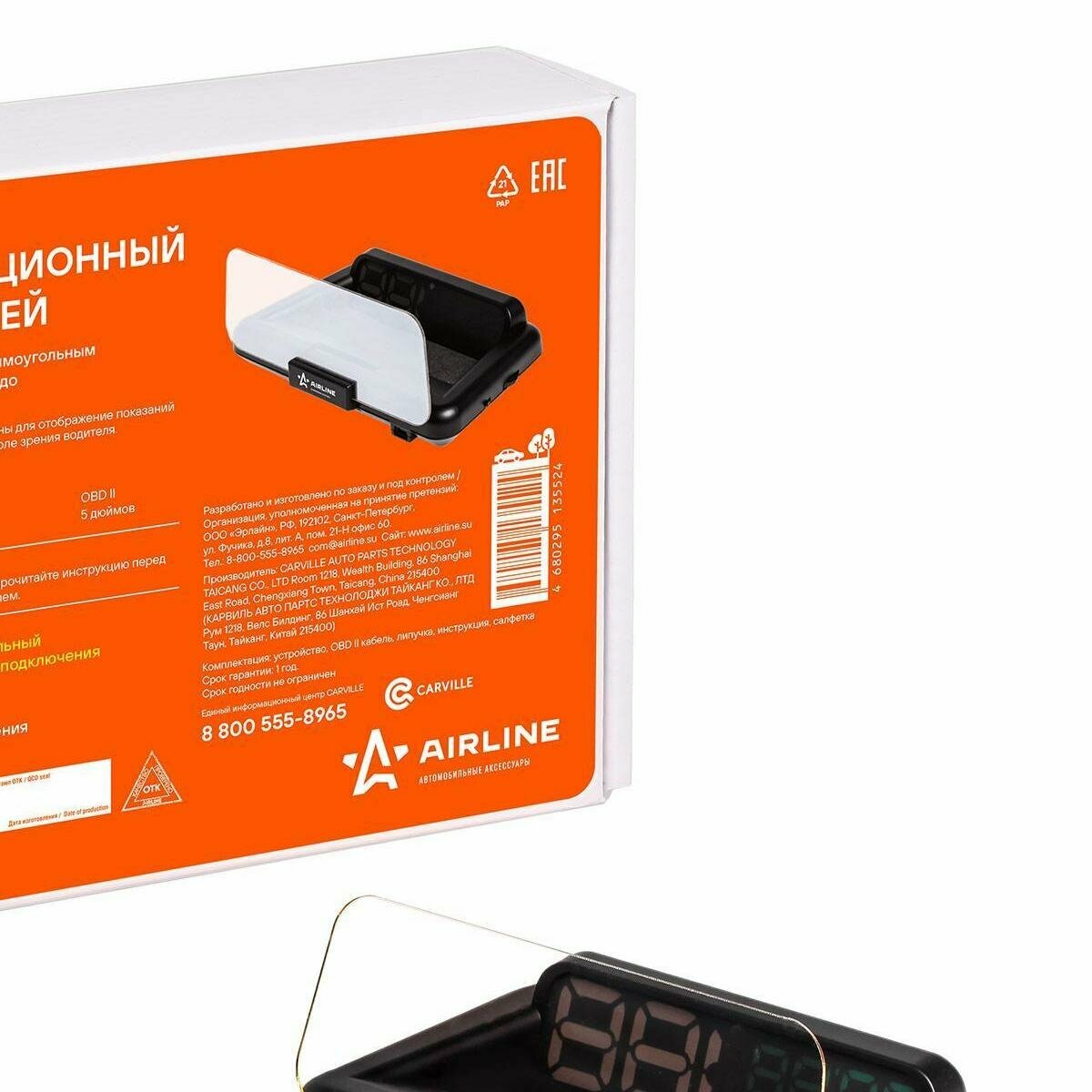 AIRLINE ALAA001 Дисплей проекционный HUD, спидометр с встроенным прямоугольным экраном "AIRLINE"