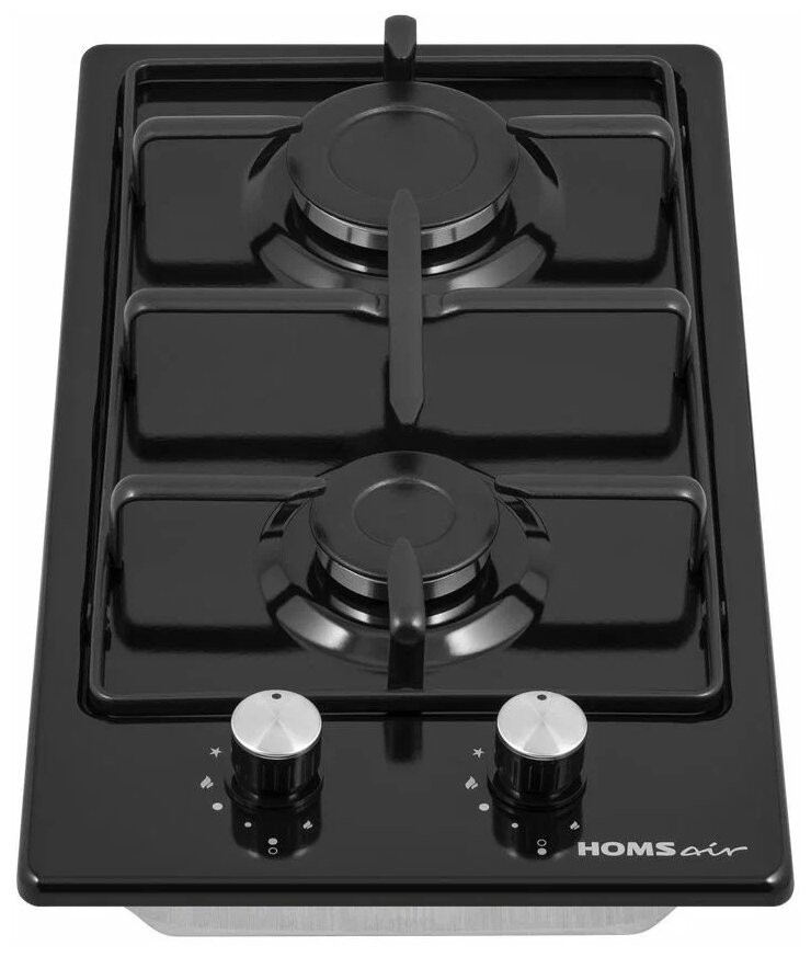 Газовая варочная поверхность HOMSair HGE323GCBK [эмал. сталь, конф.-2 шт, эл-подж., газконт., реш.-эмал. сталь, черный, серебристый]