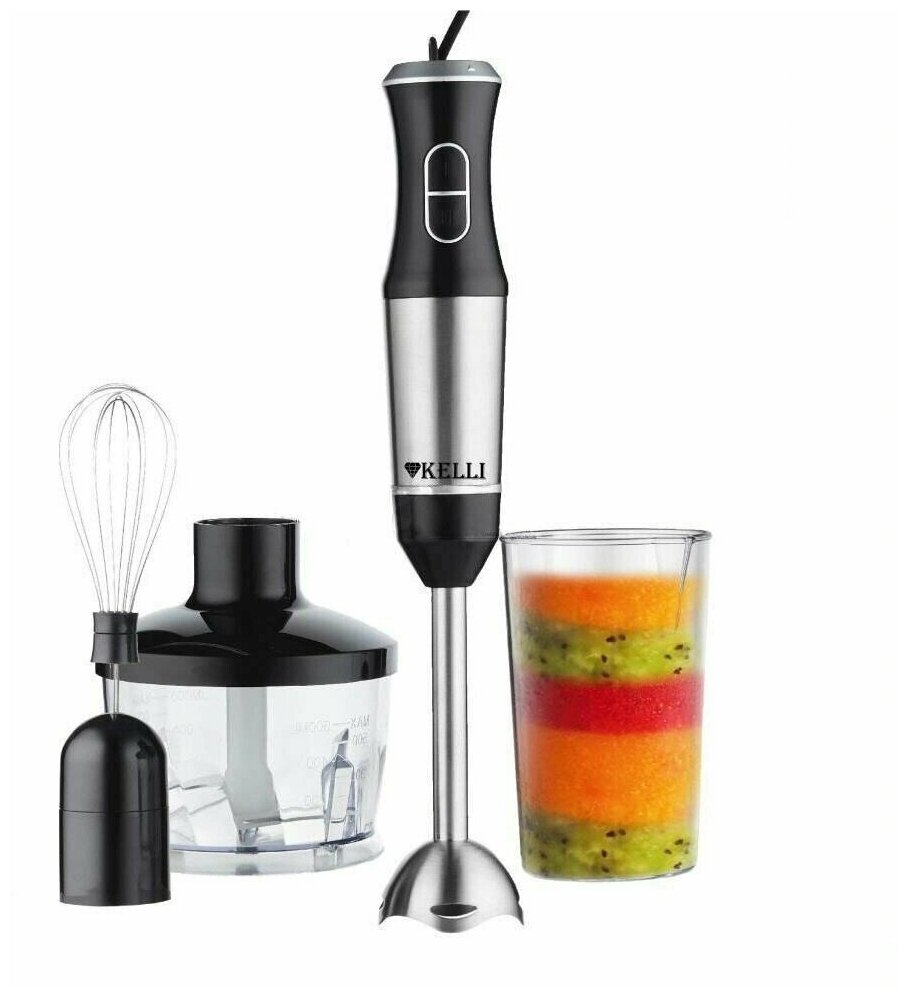 Блендер KELLI KL-5105, погружной, 1200 Вт, 2 скорости, стакан 0.5 л, чёрный