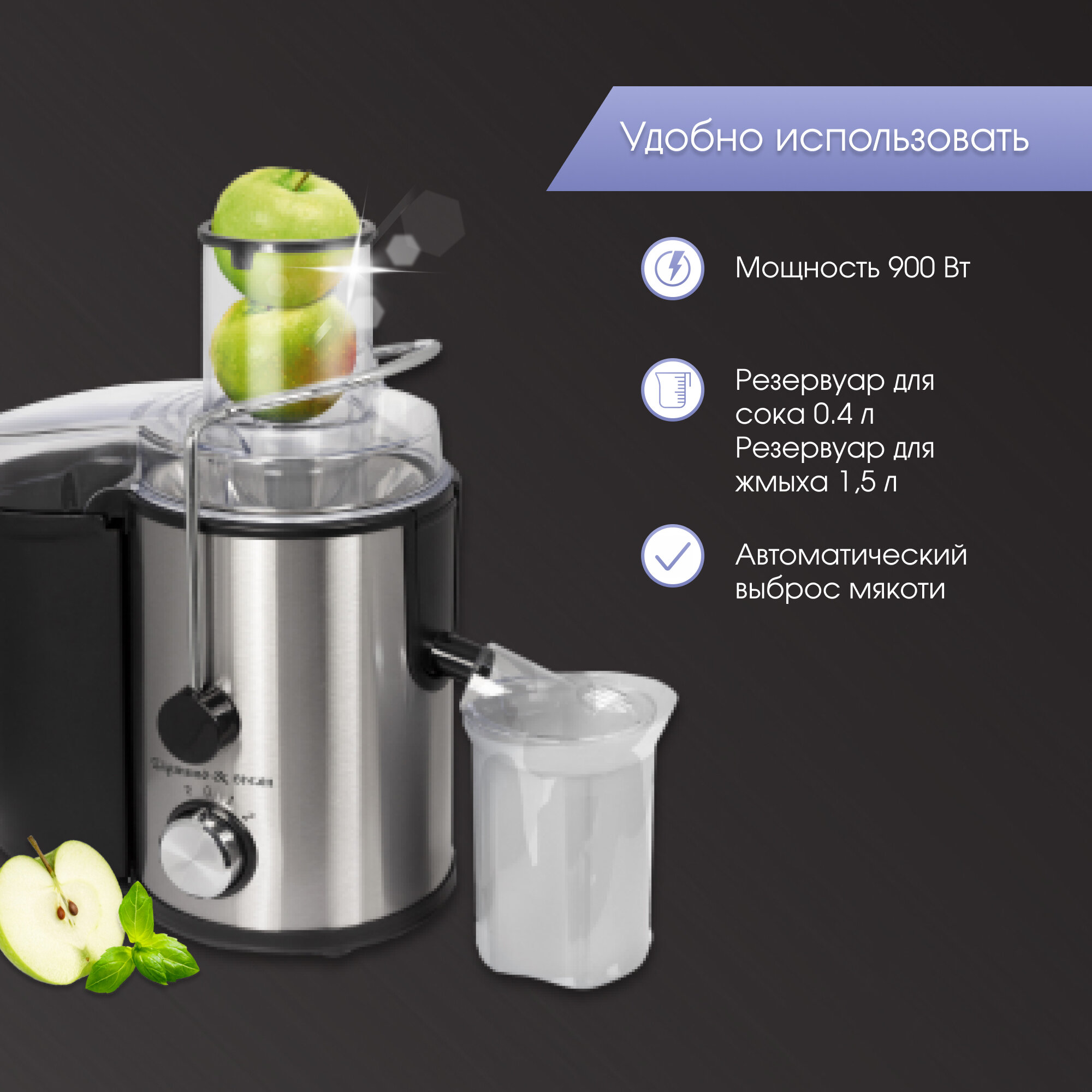 | Особенности | автоматический выброс мякоти / защита от перегрузки |
