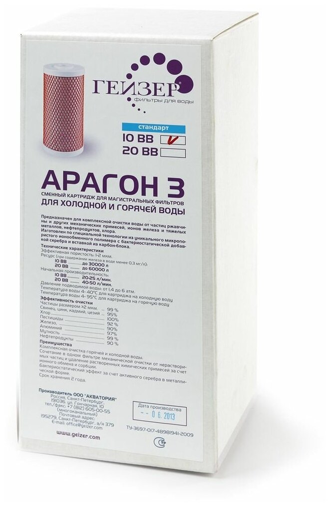 Картридж Гейзер Арагон 3 10BB, мягкая вода, позволяет получить не только вкусную, но и безопасную воду, 30054