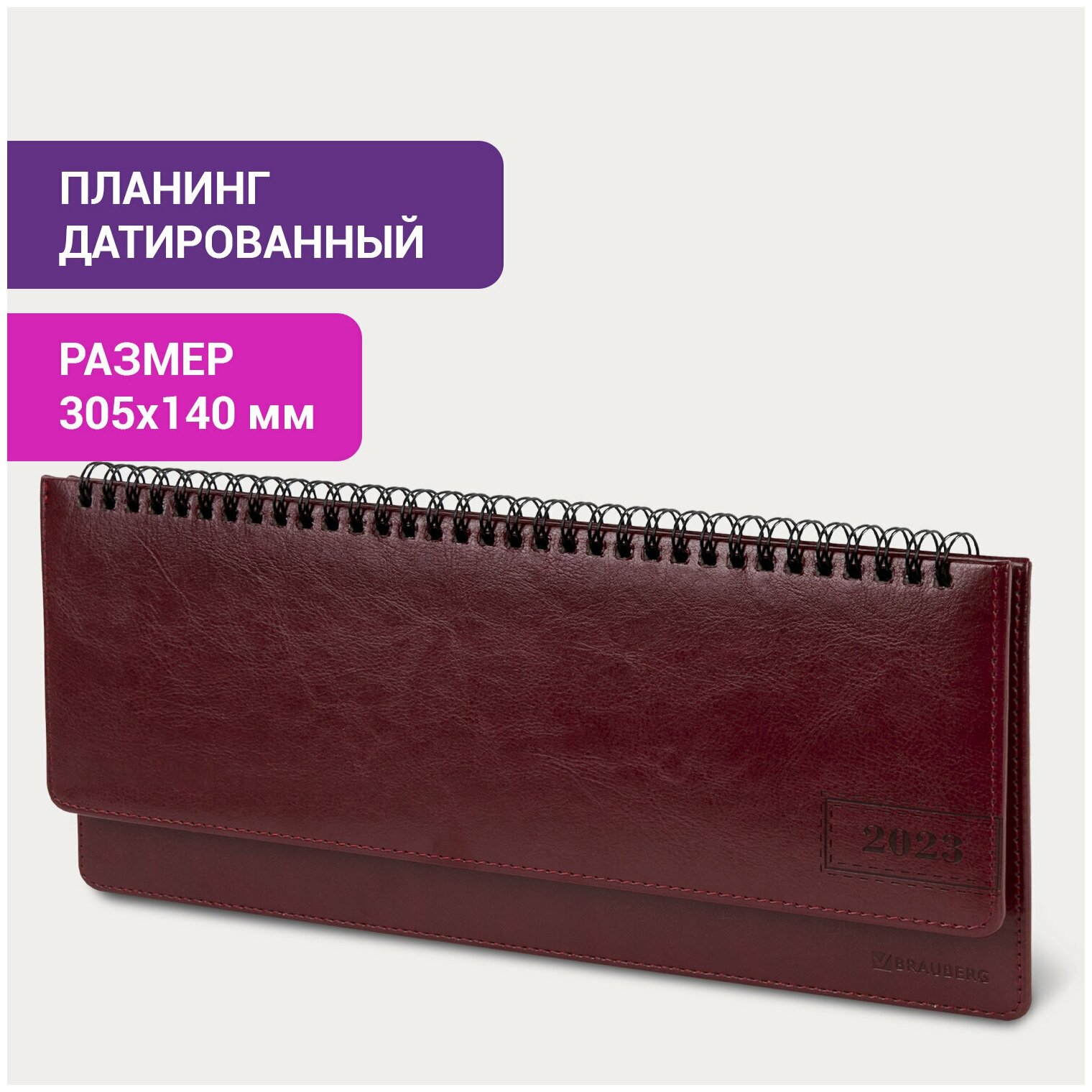 Планинг датированный 2023 305х140 мм BRAUBERG "Imperial", под кожу, бордовый, 113992