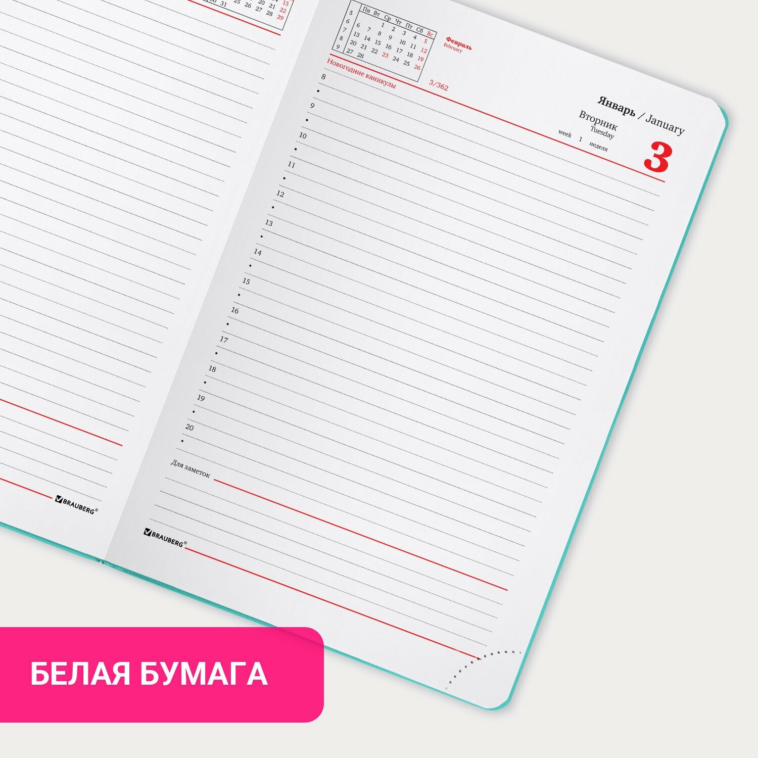 114100, Ежедневник датированный 2023 А5 138x213 мм BRAUBERG "Foliage", под кожу, бирюзовый, 114100