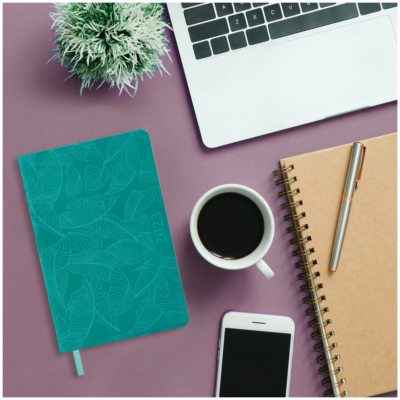 Датированный ежедневник 2023 А5 138x213 мм "Foliage", под кожу, бирюзовый, 114100