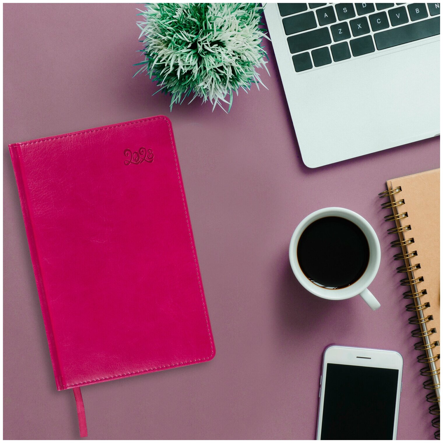 Ежедневник-планер (планинг) / записная книжка / блокнот датированный на 2023 год формата А5 (138x213 мм) Brauberg Rainbow, под кожу, розовый