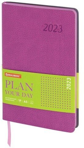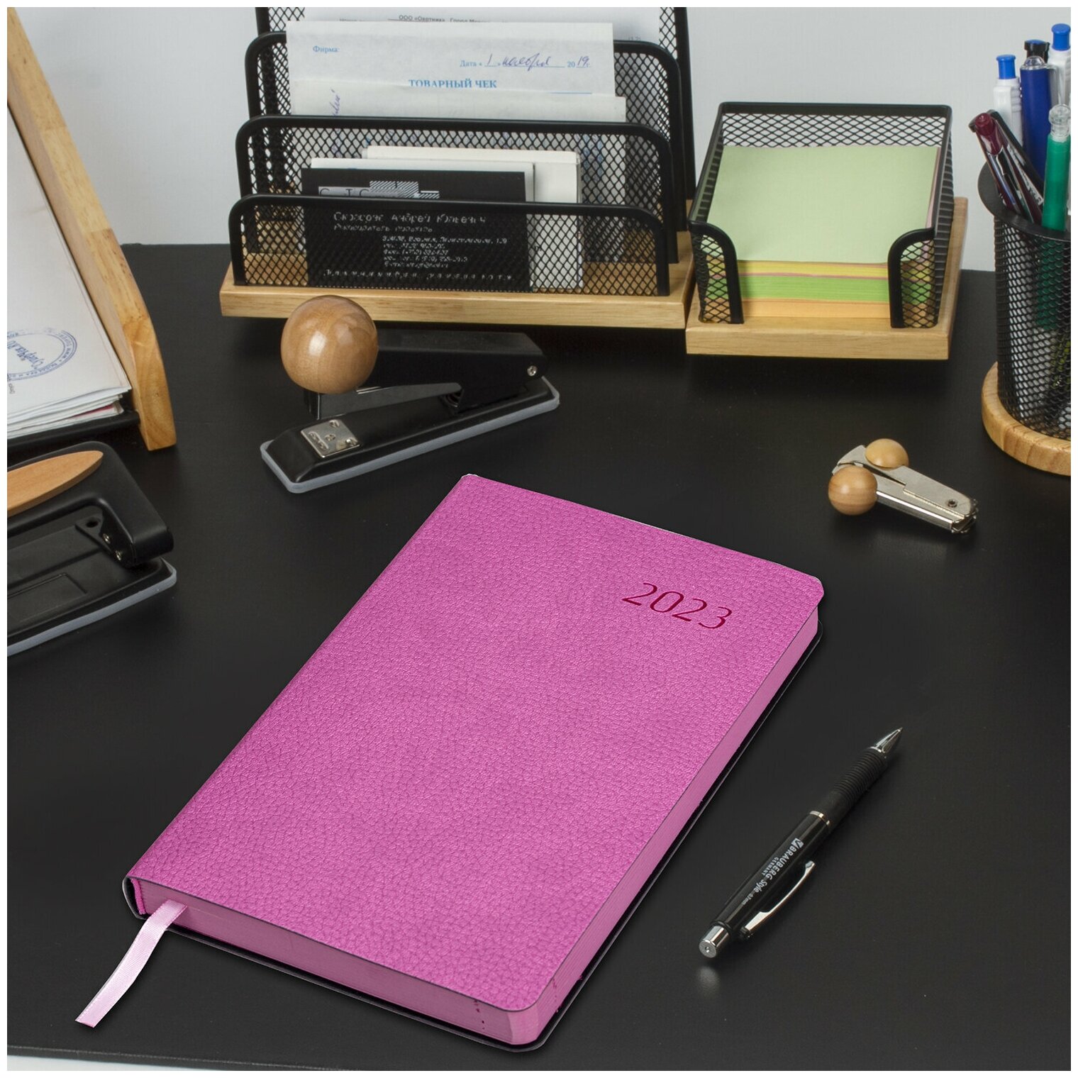 Ежедневник-планер (планинг) / записная книжка / блокнот датированный на 2023 год формата А5 (138x213 мм) Brauberg Stylish, под кожу, розовый