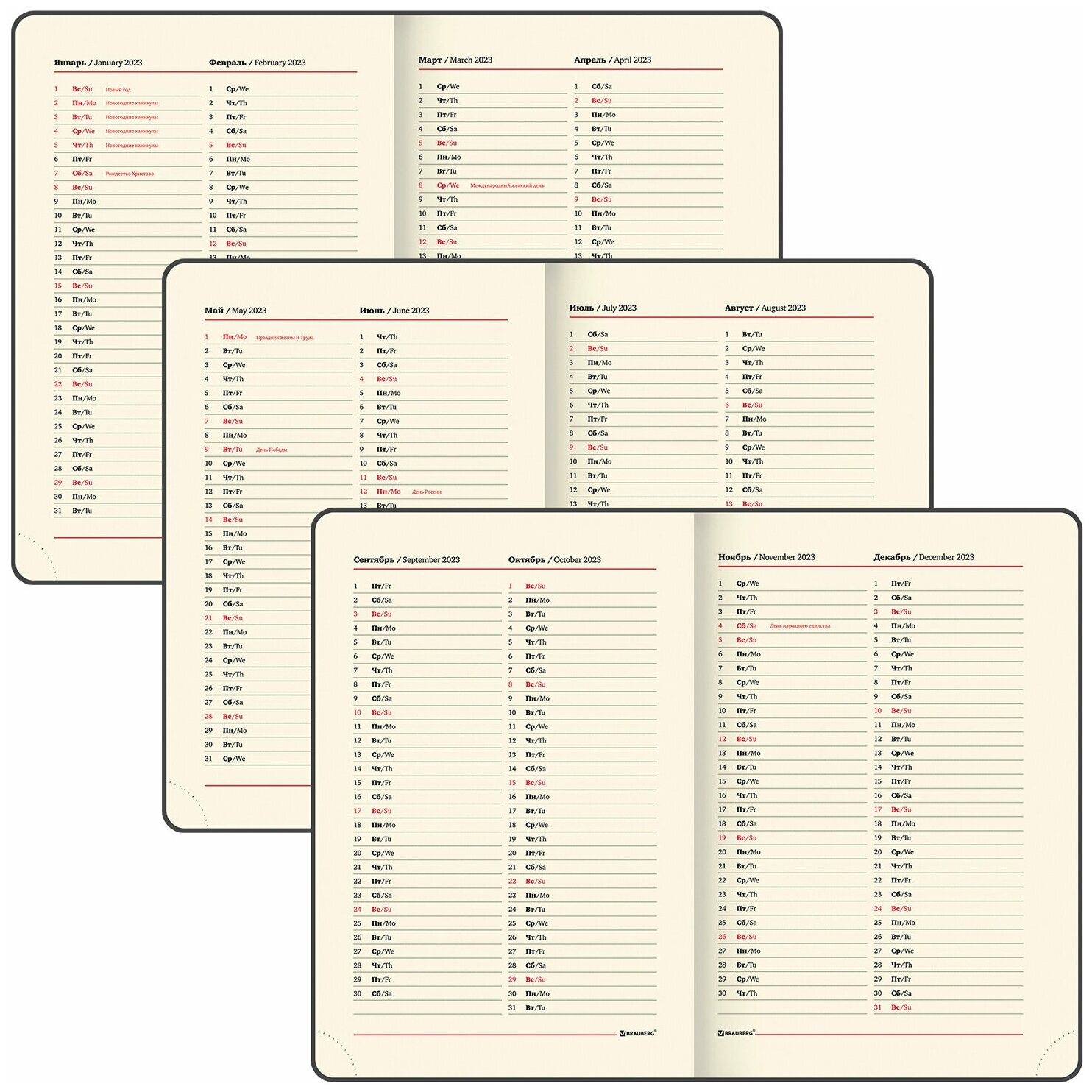 Ежедневник-планер (планинг) / записная книжка / блокнот датированный на 2023 год формата А5 138x213 мм Brauberg Comodo, под кожу, красный