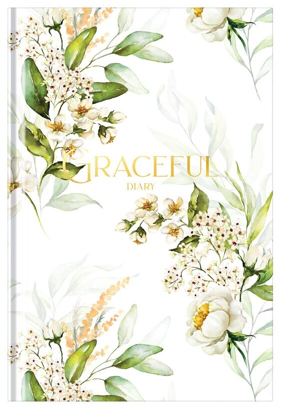 Ежедневник недатированный А5, 160л., 7БЦ OfficeSpace "Цветы. Graceful", глянцевая ламинация, тиснение золотой фольгой, 340493