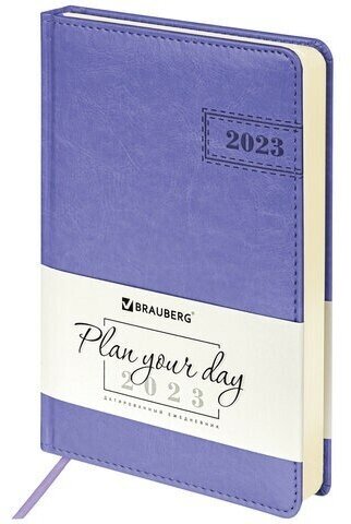 Ежедневник-планер (планинг) / записная книжка / блокнот датированный на 2023 год формата А5 138x213мм Brauberg Imperial, под кожу, фиолетовый