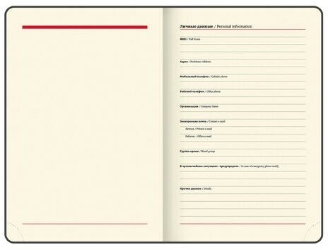 | Особенности | календарь / перфорация уголков / справочная информация / ляссе / прошивка по периметру обложки / закругленные углы |