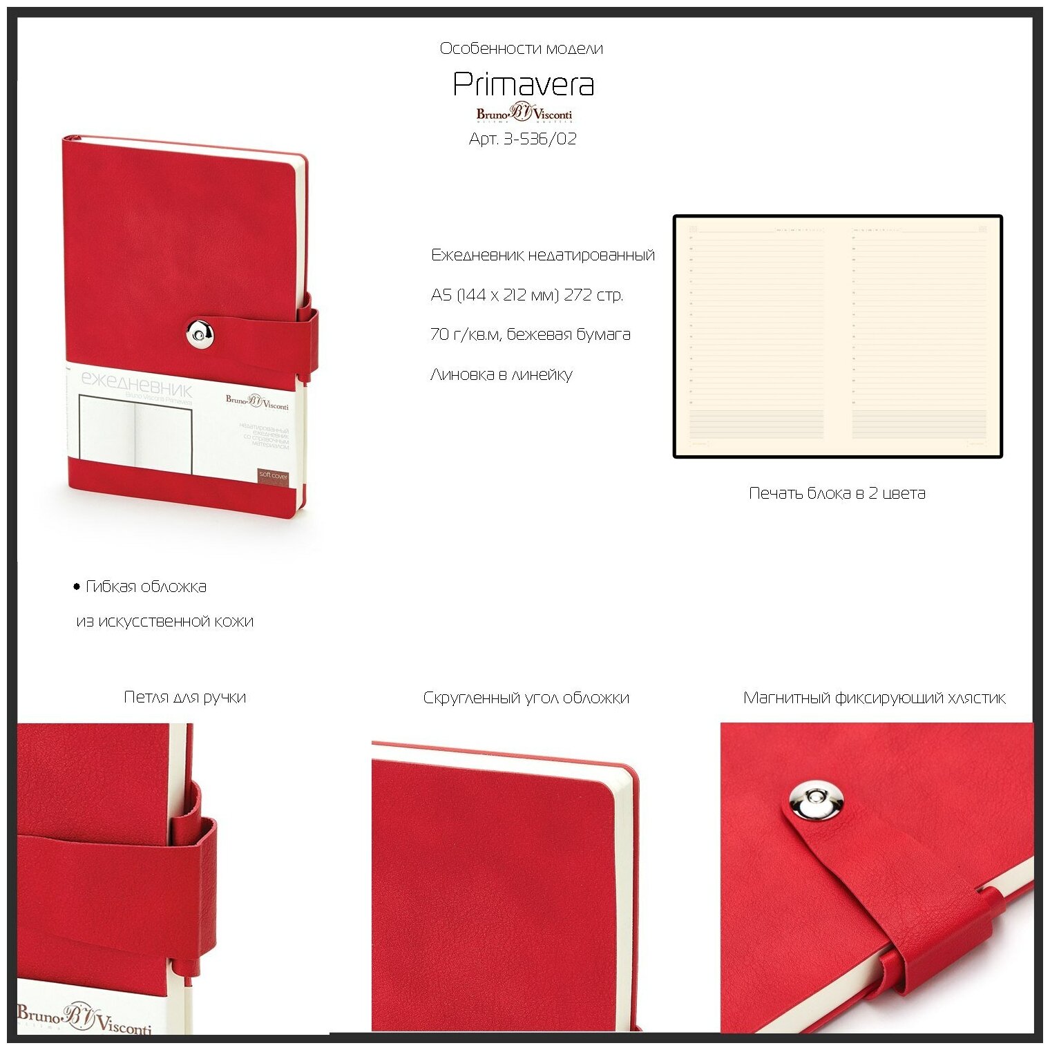 Купить Ежедневник BrunoVisconti недатированный, А5 (145х211 мм), "PRIMAVERA" красный 272 стр., Арт. 3-536/02
