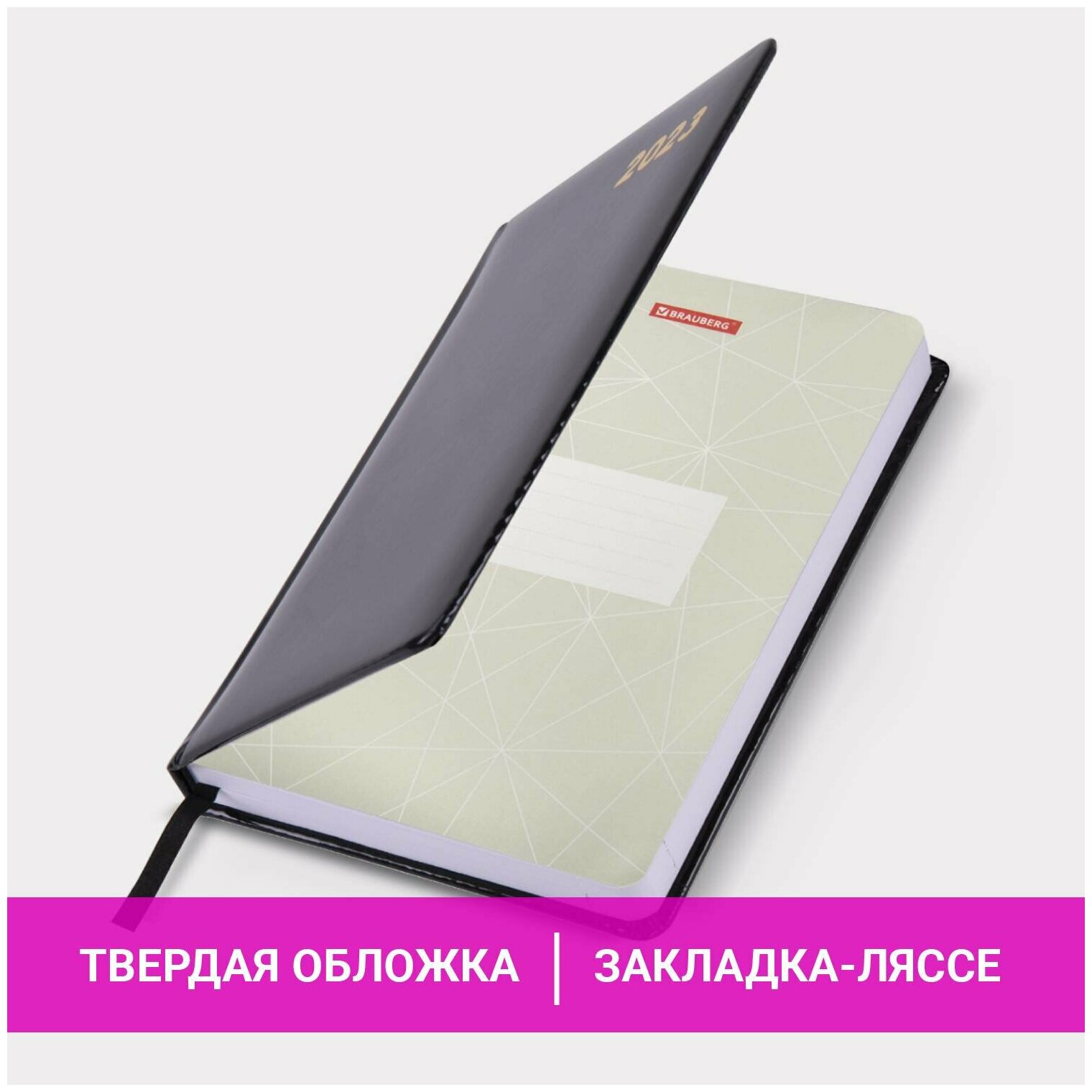 Ежедневник-планер (планинг) / записная книжка / блокнот датированный на 2023 год формата А5 (138x213 мм) Brauberg Holiday, под кожу, зеркальный