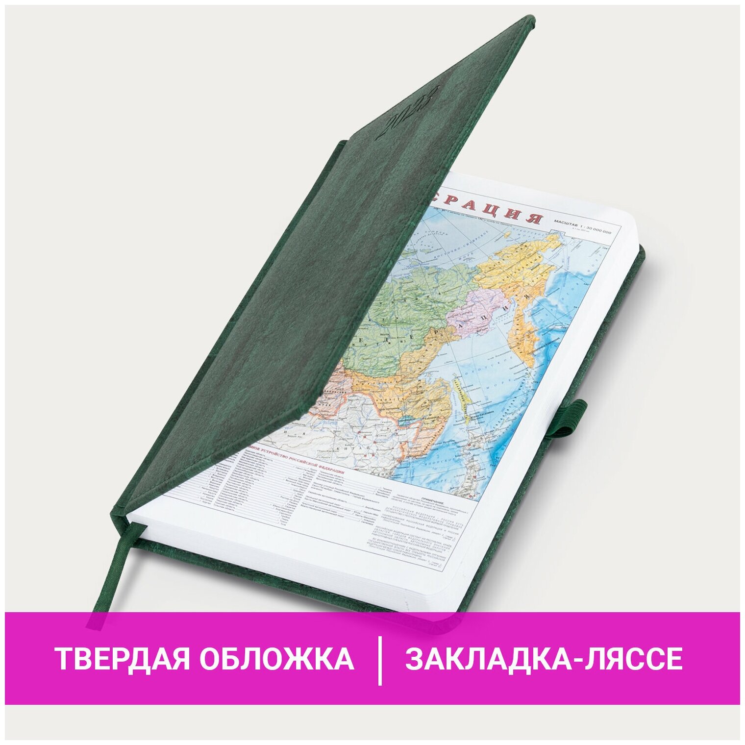 | Особенности | календарь / перфорация уголков / справочная информация / ляссе / прошивка по периметру обложки / закругленные углы |