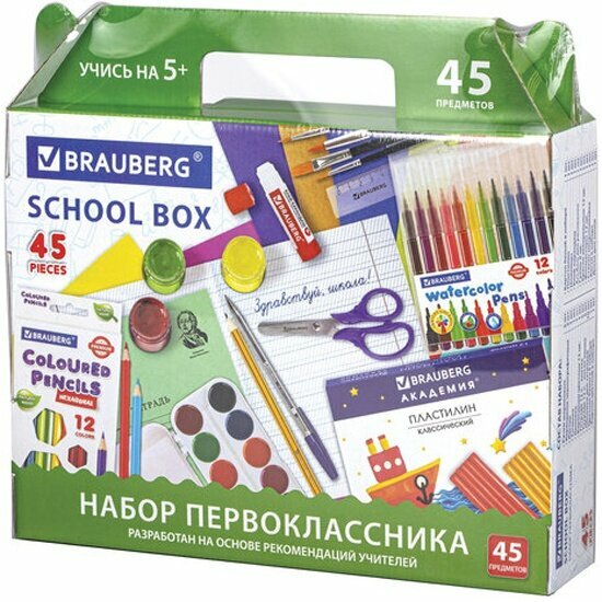 Набор школьных принадлежностей Brauberg в подарочной коробке, "Набор первоклассника", 45 предметов (880122)