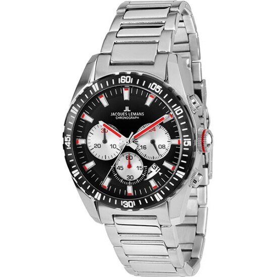 Наручные часы Jacques Lemans 1-1801L, мужские кварцевые спортивные часы Жак Леман с хронографом и датой на стальном браслете