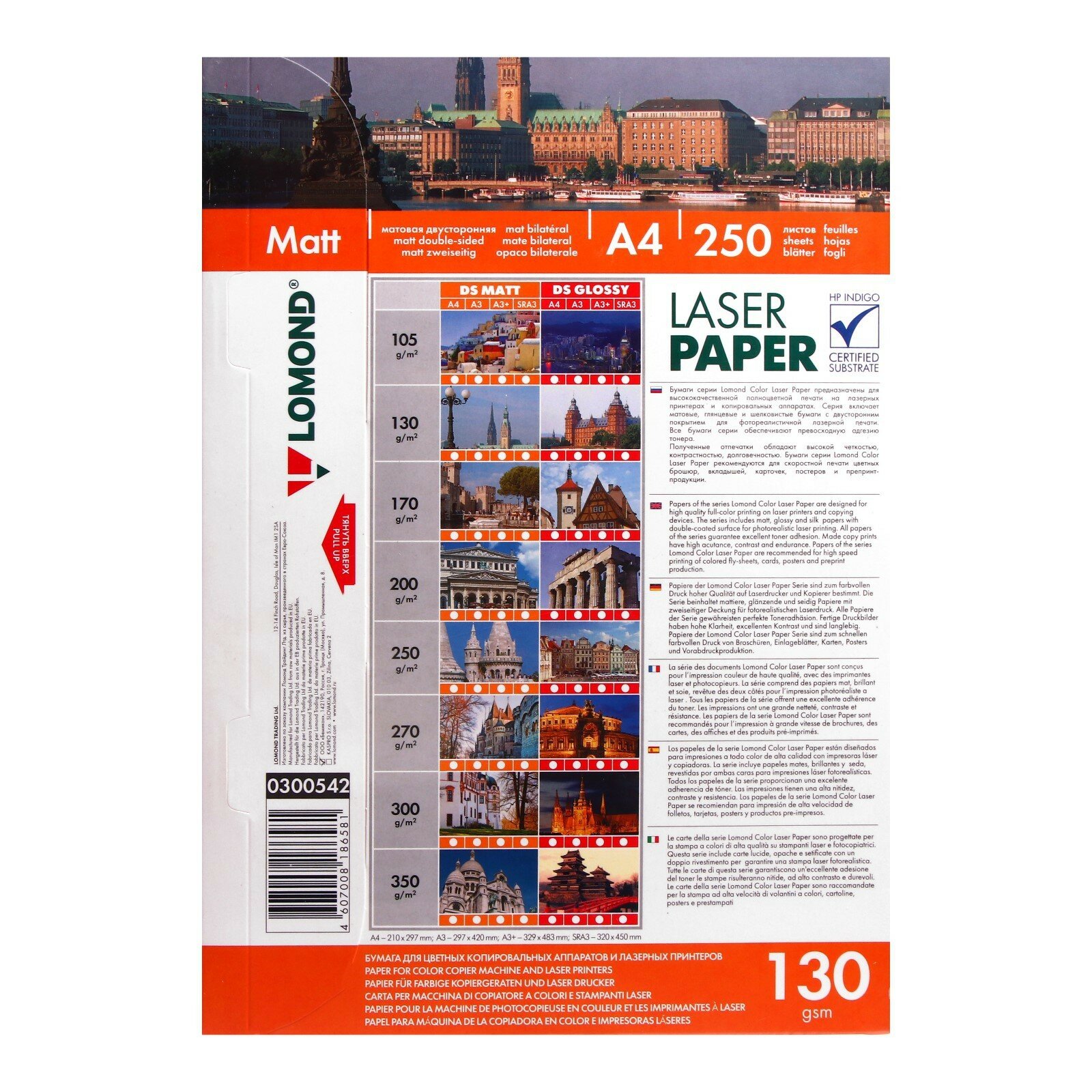 Купить Бумага для лазерной печати Lomond A4, 130 г/м2 (250 листов) матовая двусторонняя фотобумага (Matt DS Color Laser Paper) (0300542)