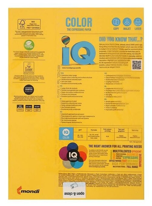 Ниже Вы можете прочитать отзывы на Бумага IQ "Color intensive" А4, 80г/м2, 500л. (солнечно-желтый), ознакомится с подробными характеристиками, посмотреть интересные обзоры и фотографии на Бумага IQ "Color intensive" А4, 80г/м2, 500л. (солнечно-желтый).